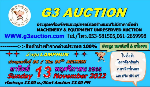 G3 Auction Co., Ltd. aims to be the “Pioneer in Tri-Nations Auction” and provide quality imported used machinery for the Northern region of Thailand. Due to our location, the transportation of machinery into our neighboring countries and within Thailand is our most valuable asset.